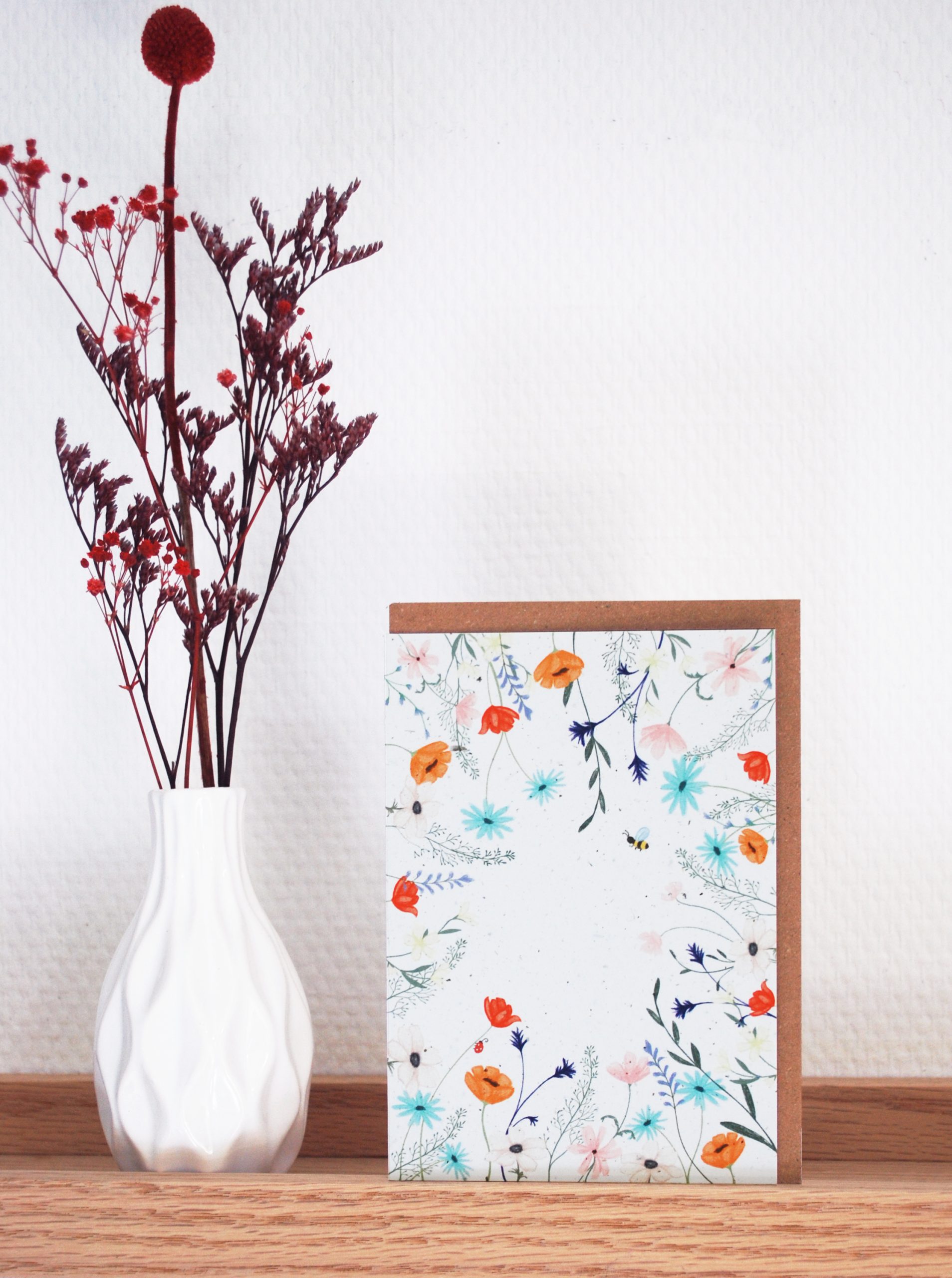Duurzaam wenskaartje gedrukt op gerecycled papier gemaakt met tomatenplantvezels.
