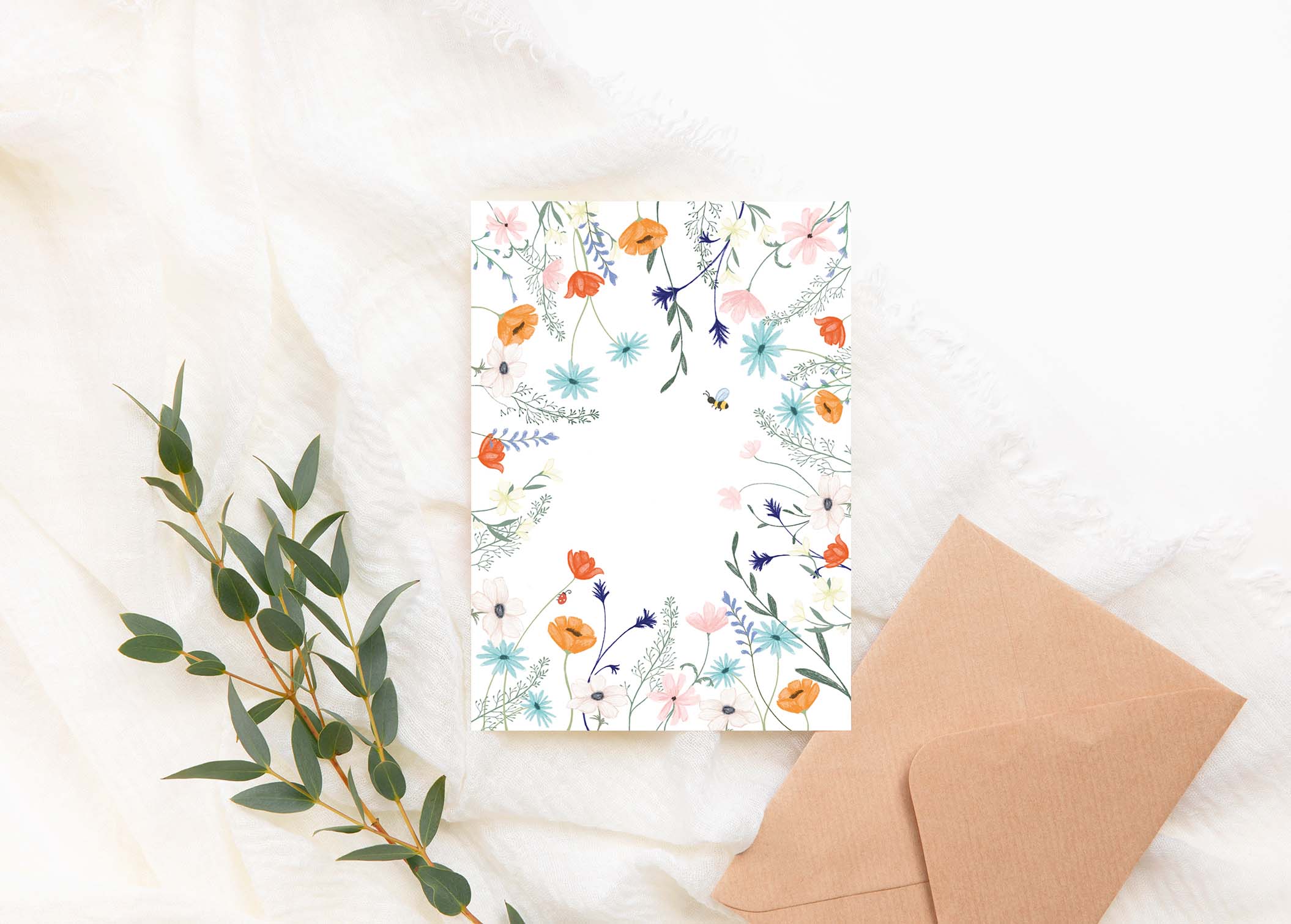 Deze gevouwen kaart komt inclusief bruine kraft envelop.
