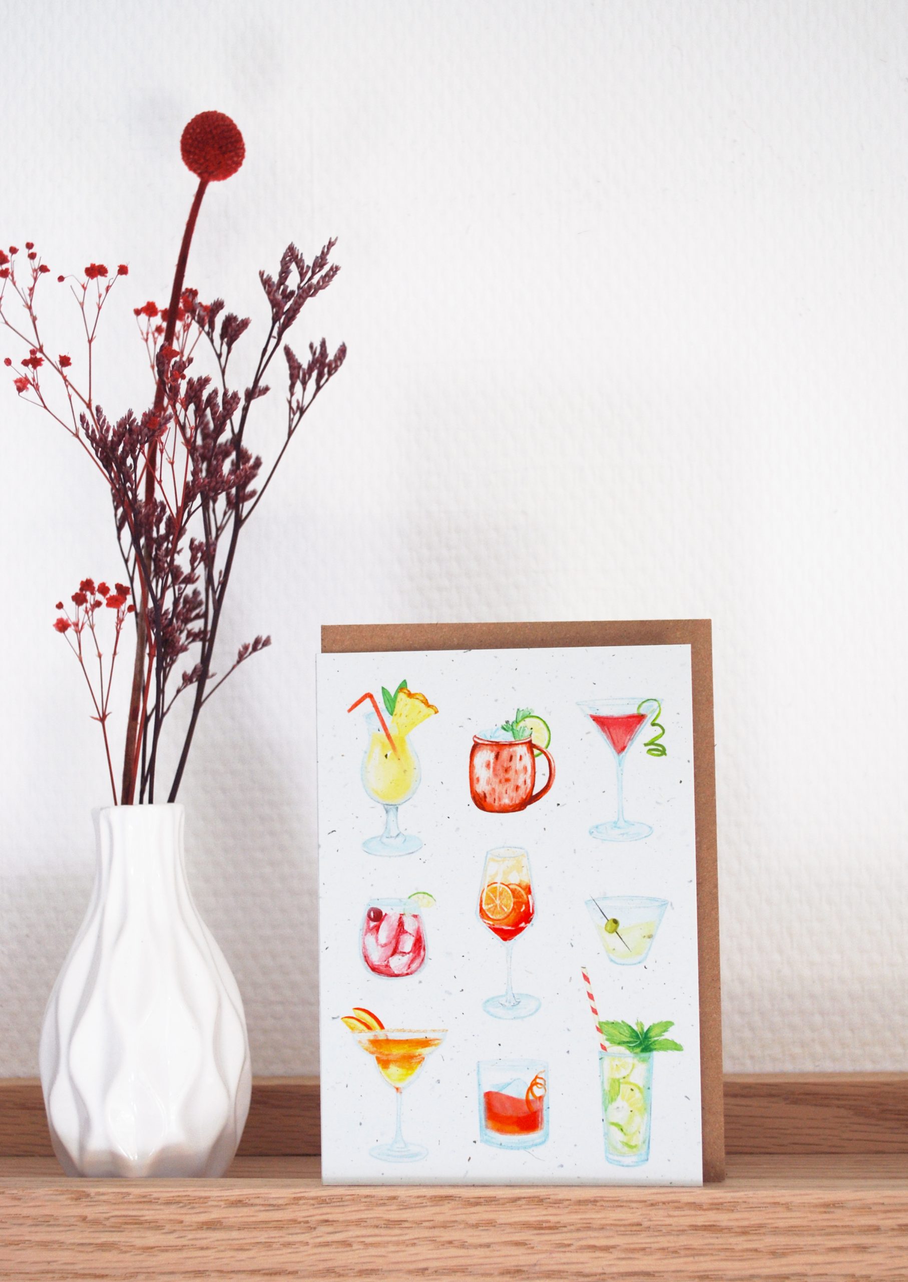 Duurzaam wenskaartje gedrukt op gerecycled papier gemaakt met tomatenplantvezels.
