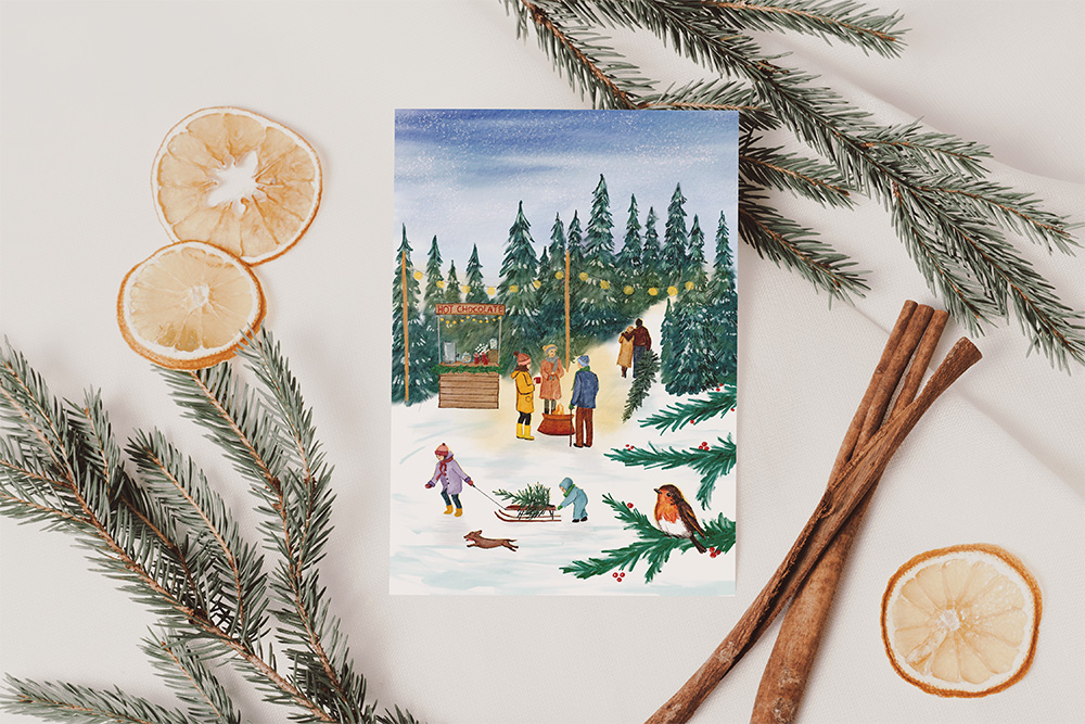 Kerstkaart kerstbomenmarkt