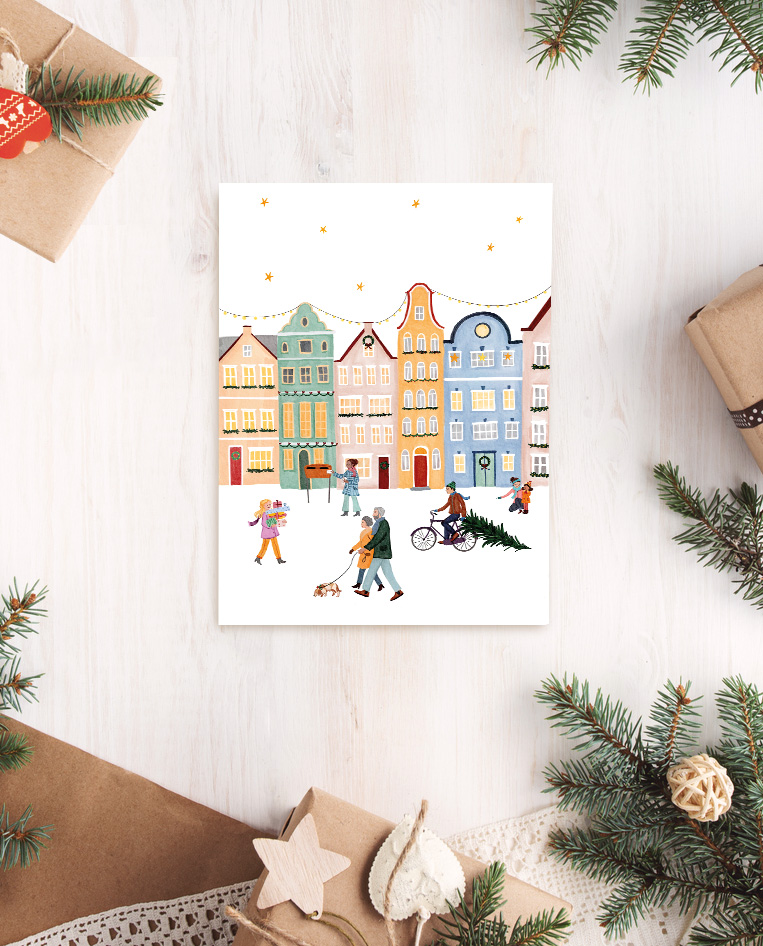 Kerstkaart winterstad