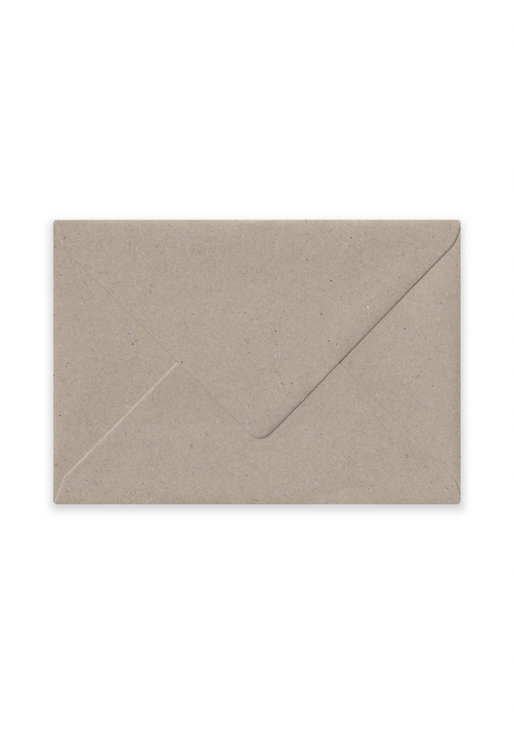 Deze gerecyclede envelop heeft een licht grijze kleur en is gemaakt van 120 grams 100% gerecycled papier. De envelop is 11,4 x 16,2 cm en past bij een A6 formaat kaart. De kleuren kunnen soms wat schommelen aangezien de gerecyclede  grondstoffen wisselend van samenstelling zijn. Dit maakt iedere envelop uniek!